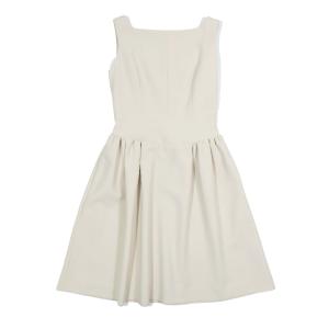 新品同様 FOXEY NEWYORK フォクシー ニューヨーク ストレッチ ワンピース ドレス 膝丈 フレア ノースリーブ パーティ ベージュ 38 レディース 古着 中古