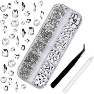 ネイルパーツ ラインストーン ビーズ ピンセットとワックスペンシル付き 3D ひし形 ハート 長方形 丸 デコパーツ (多型クリア)