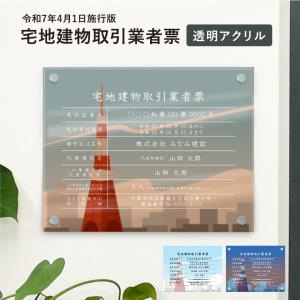 宅地建物取引業者票(令和7年4月1日施行版) 透明アクリルH35×W45cm 選べるデザイン 壁付けタイプ 化粧ビス tk-acryl-design03