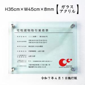 宅地建物取引業者票(令和7年4月1日施行版) ガラスアクリル 8mm 宅建 業者票 不動産 許可票 事務所 H35×W45cm tk-glass-acryl02