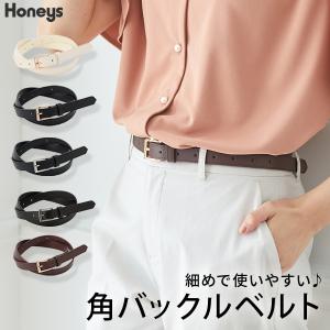 ベルト レディース おしゃれ ウエストマーク 合皮 シンプル 春 夏 秋 冬 Honeys ハニーズ 角バックルベルト