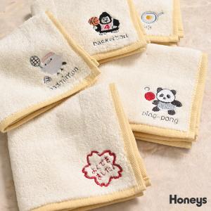 ハンカチ タオルハンカチ ミニタオル 刺繍 綿100% ワンポイント アニマル柄 ユニーク 食べ物柄 フェミニン レディース Honeys ハニーズ ハンカチタオル