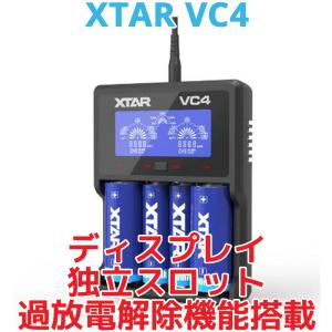 XTAR エクスター VC4 リチウムイオン 充電器 4スロット USB 過放電解除 安全回路 ディスプレイ 電池 バッテリーチャージャー 高速 急速 充電池 Li-ion