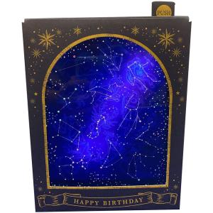 バースデーカード ♪Jupiter 立体 ライト&メロディー 黒枠に星座図 JPME7-0 749478 サンリオ sanrio グリーティングカード 誕生日 お祝い