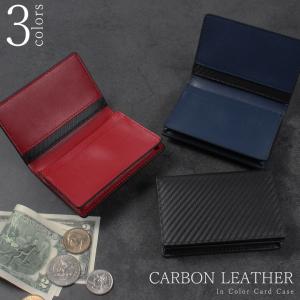 名刺入れ カードケース 本革 レザー おしゃれ カーボンレザー かっこいい 二つ折り デザイン ブランド カジュアル ビジネス 紳士