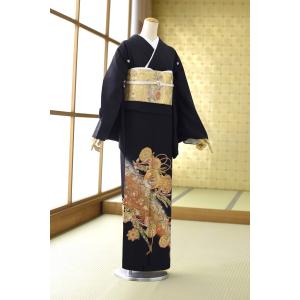 留袖とモーニング同時注文で10%OFF 留袖 レンタル 広巾 大きめサイズ 身長160cm〜167cm位 13号〜17号位まで 結婚式 母親 高級 正絹 黒留袖レンタル