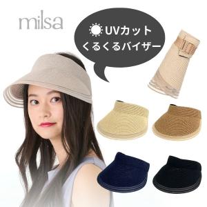 セール milsa 洗濯機で洗える くるくるサンバイザー UVカット UV加工 バイザー あご紐付き サイズ調整 折りたたみ 帽子 126-361219
