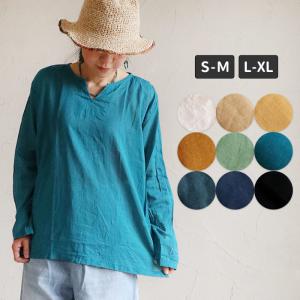 送料無料 シャツ トップス ブラウス カットソー エスニック 長袖 無地 レディース メンズ ファッション クルタ キーネック 山ガール 男女兼用 (1)
