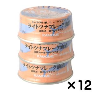 KAMOME かもめ屋 ライトツナフレーク 油漬 1ケース(3個パック×12) 無添加 ツナ缶