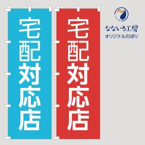 のぼり 旗 宅配対応店 お届け 出前 配達 フードデリバリー お店 ごはん お知らせ 案内 文字 シンプル 600*1800 青赤