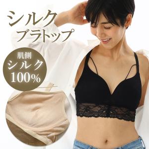 【肌側シルク100%】ノンワイヤーシルクブラトップ|シルクブラ シルク下着 シルクブラトップ ブラトップ カップ付 ナイトブラ