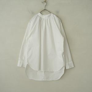 【定価1.4万】アワーホームOURHOME *頼れるギャザーブラウス*Fホワイトスタンドカラー背部2ボタンきれいめ(2-2509-482)【82J52】