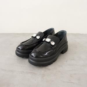 【未使用/定価2.5万】スタッカート STACCATO *BIGボンボリュームローファー 24.5/24.5*レザー皮革黒0825(ksh10-2508-5)【72H52】
