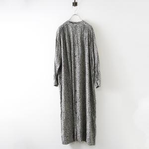 美品 2023SS ルグラジック LE GLAZIK プリントロングシャツドレス 36\ブラック フラワー バンドカラー ワンピース 花柄【2400014623956】