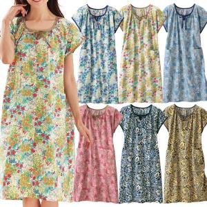 プリントワンピース 綿100% ブロード生地 さらさらの肌ざわり レディース 春夏秋 961866