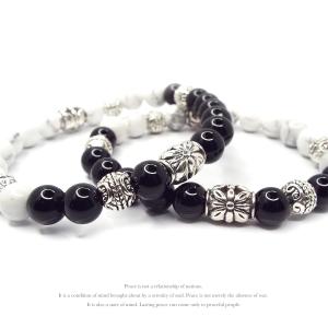 天然石 パワーストーン ブレスレット ペア アクセサリー 陰陽 オニキス ホワイトターコイズ