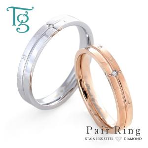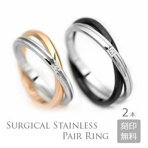 ペアリング 刻印 ステンレス ダイヤモンド 2本セット 安い シンプル 金属アレルギー対応 ローマ数字 クロス 艶消し おしゃれ 指輪 マリッジリング 結婚指輪