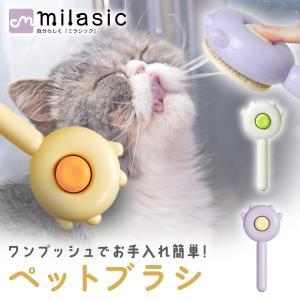 ペットブラシ 猫 毛取りブラシ ワンプッシュ 犬 抜け毛 ペット用ブラシ 水洗い マッサージ トリミング ピンブラシ MILASIC ポイント消化