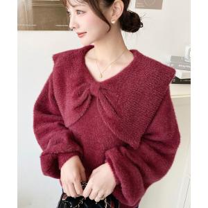 ニット セーター ケープリボンシャギーニットプルオーバー レディース