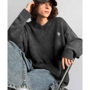 セーター ニット 「Classical Origin」「自分ウケ最強。」綿100%刺繍入りピグメント加工オーバーサイズVネックセーター/Pigment
