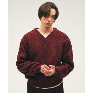 セーター ニット Shallow V-Neck Cable Knit / 浅Vネックケーブルニット メンズ レディース