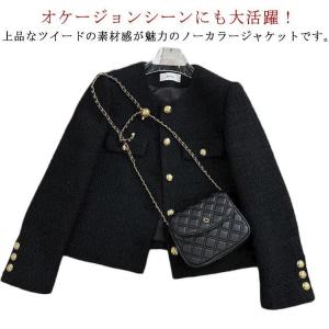 ツイードジャケット 黒 ノーカラージャケット ツイード レディース ジャケット 秋 春 アウター ショート丈 ママスーツ フォーマル ママ 卒業式 ノ