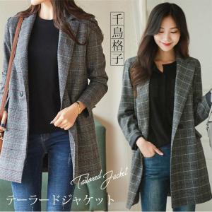 テーラードジャケット レディース 秋 長袖 アウター カジュアル グレンチェック コート 着痩せ オフィス 通勤 卒園式