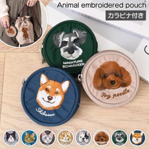 ポーチ 小物入れ 小さめ カラビナ コインケース レディース アニマル 刺繍 ミニ財布 小銭入れ キーケース ファスナー 丸型 ミニ ネコ イヌ