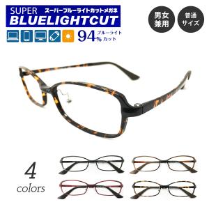 ブルーライトカット メガネ 94%カット 度なし 伊達 スーパーブルーライトカットメガネ スクエア メタルフレーム パソコンメガネ PCメガネ スマホ