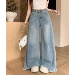 ジーンズ デニム デニムパンツ メンズライク 裾フリンジ ワイドデニムパンツ レディース