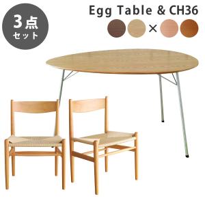 ダイニングテーブルセット お得な 3点セット アルネ・ヤコブセン エッグテーブル & ハンス ウェグナー CH36 サイドチェア リプロダクト