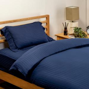 [シングル] 綿サテンストライプカバーリングS NV ヤマダオリジナル ネイビー