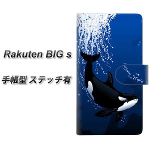 ラクテン ビッグ エス 手帳型 スマホケース 【ステッチタイプ】 423 シャチ UV印刷 横開き