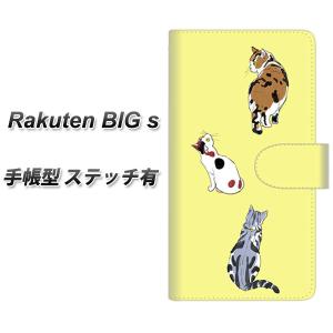 ラクテン ビッグ エス 手帳型 スマホケース 【ステッチタイプ】 YJ222 猫 UV印刷 横開き