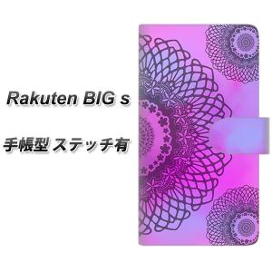 ラクテン ビッグ エス 手帳型 スマホケース 【ステッチタイプ】 YJ344 レース UV印刷 横開き