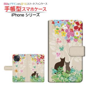 スマホケース iPhone14 アイフォン フォーティーン 手帳型 ケース カメラ穴対応 森の中の猫 ガーリー 花 葉っぱ 蝶 ネコ 木