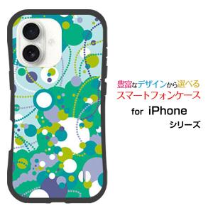 スマホケース iPhone 17 耐衝撃 ハイブリッドケース ストラップホール付 ドット(グリーン×パープル×ブルー) カラフル ポップ 水玉 緑