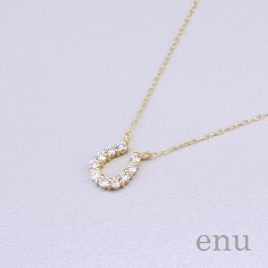 [ENP-285] エヌ enu 18金 K18 イエローゴールド ホースシューネックレス 0.10ct ダイヤモンド H&C 鑑別カード付き
