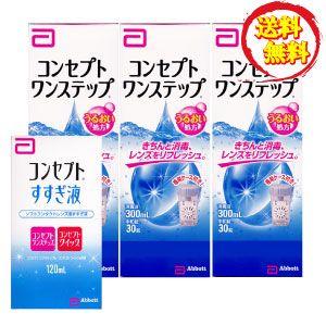 送料無料!!コンセプトワンステップ300ml×3、すすぎ液120ml×1、専用ケース付き ソフトコンタクトレンズ用 洗浄液
