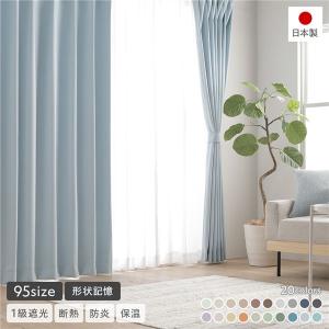 形状記憶加工 1級遮光 防炎 ドレープカーテン 単品 幅100×丈245cm 2枚入 スカイブルー 洗える 無地 日本製 受注生産