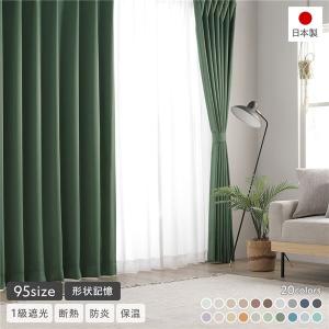 形状記憶加工 1級遮光 防炎 ドレープカーテン 単品 幅100×丈245cm 2枚入 モスグリーン 洗える 無地 日本製 受注生産