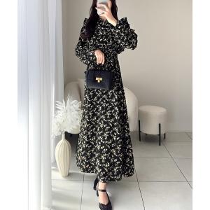ワンピース 「mily bilet」大人フェミニン。レトロ花柄ピンタックフリルワンピース