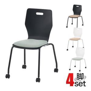 ブラック×ベージュ:11月下旬入荷予定 法人様限定 4脚セット 会議用チェア スタッキングチェア 会議椅子 エルモサ キャスター付き
