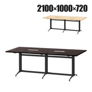 法人様限定 ミーティングテーブル 会議用テーブル OAミーティングテーブル フリーアドレス T字脚 2100×1000mm 配線ボックス ナチュラル ダークブラウン