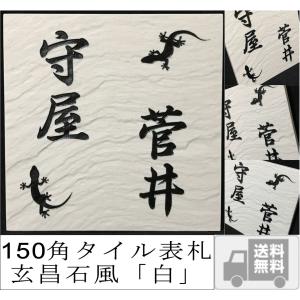二世帯住宅用に招福デザイン追加しました 150角玄昌石風タイル表札「白」 石感のある表札 戸建て マンション用 風水 おしゃれ 和風 追加マグネット可