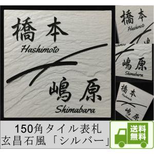 二世帯住宅用デザイン多数 タイル表札 石感のあるおしゃれ表札 150角玄昌石風表札「シルバー」 戸建て おしゃれ 和風 追加マグネット可