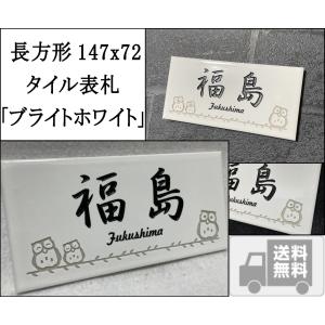風水で良いとされる白い表札 招福デザイン選べます(フクロウ、ヤモリなど) 長方形タイル表札「ブライトホワイト」 (147mm x 72mm) 追加マグネット可