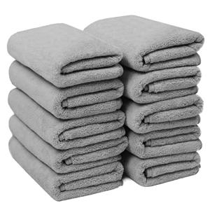 フェイスタオル マイクロファイバー 10枚セット 約35X75cm 柔らかい ふわふわ 高速 吸水 速乾 通気 人気 家庭/業務用 (ライトグレ