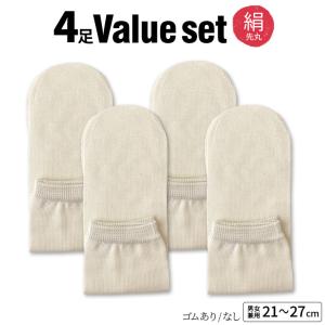 冷えとり靴下 4足セット シルク先丸ソックス 絹 靴下 レディース メンズ シルク100% 絹先丸 冷え取り靴下 ゴム選択可 かかとなし 日本製 841