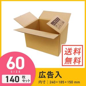 ダンボール 段ボール箱 宅配60サイズ広告入り(最大サイズ3辺60cm) 240×185×深さ150mm 140枚セット